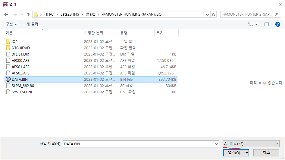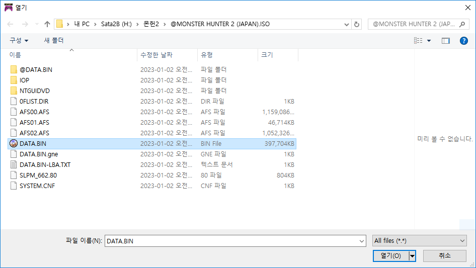 All files로 바꿔주면 DATA.bin이 보일텐데