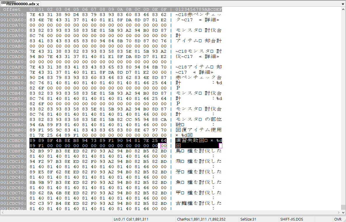 mib파일이나 NPC대사는 문제가 없지만, 그 외 파일들은 기계어와, 문자열들이 섞여서 저장되어있다.