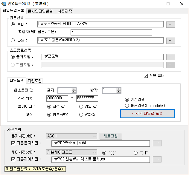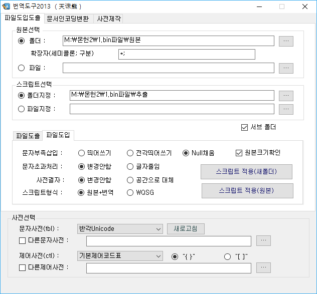 원본 bin 폴더와 추출될 폴더 사전들을 선택해준다.