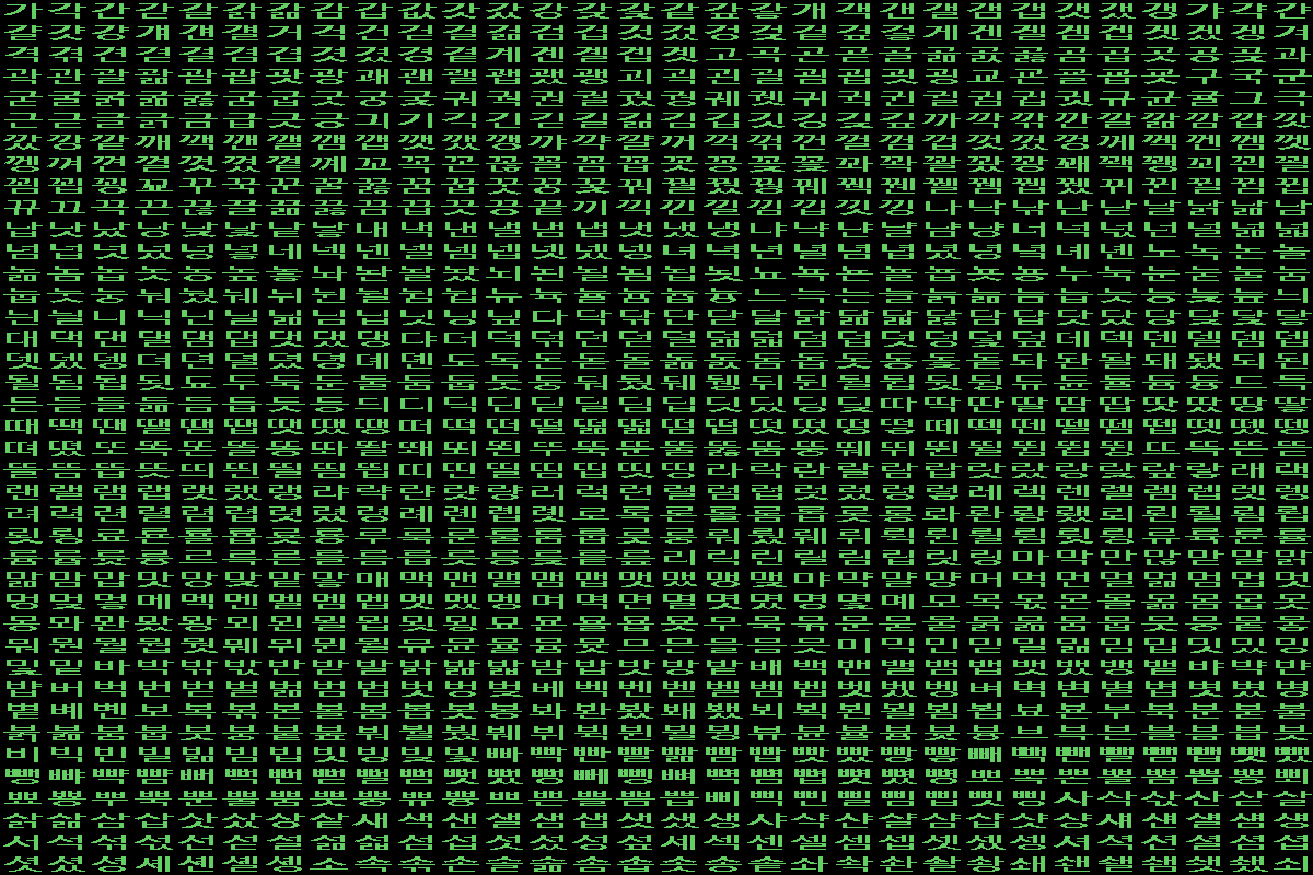 이걸 2350자의 한글로 덮어씌우면 '亞'라는 글자를 '가'로 출력할 것이다