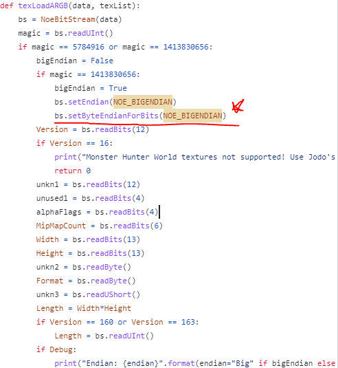 보면 알다시피 엔디언에 따라 비트 읽기 순서도 바꿔주고 있다. 문제는 kurrimu코드에선 버그가 있는건지 사용법을 모르는건지 고쳐도 작동을 안한다....
