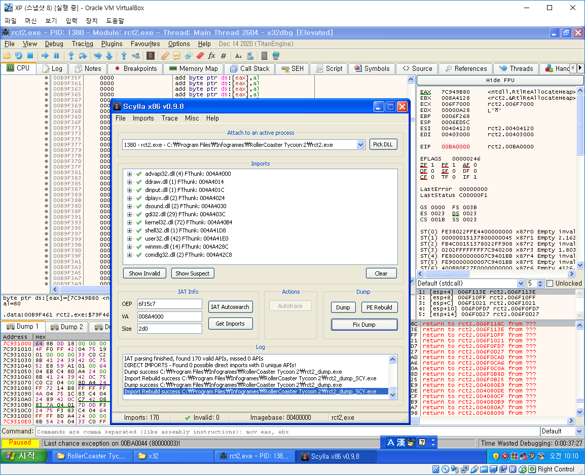 마지막으로 Scylla로 Dump하고 Fix Dump를 하면 게임 클리어!