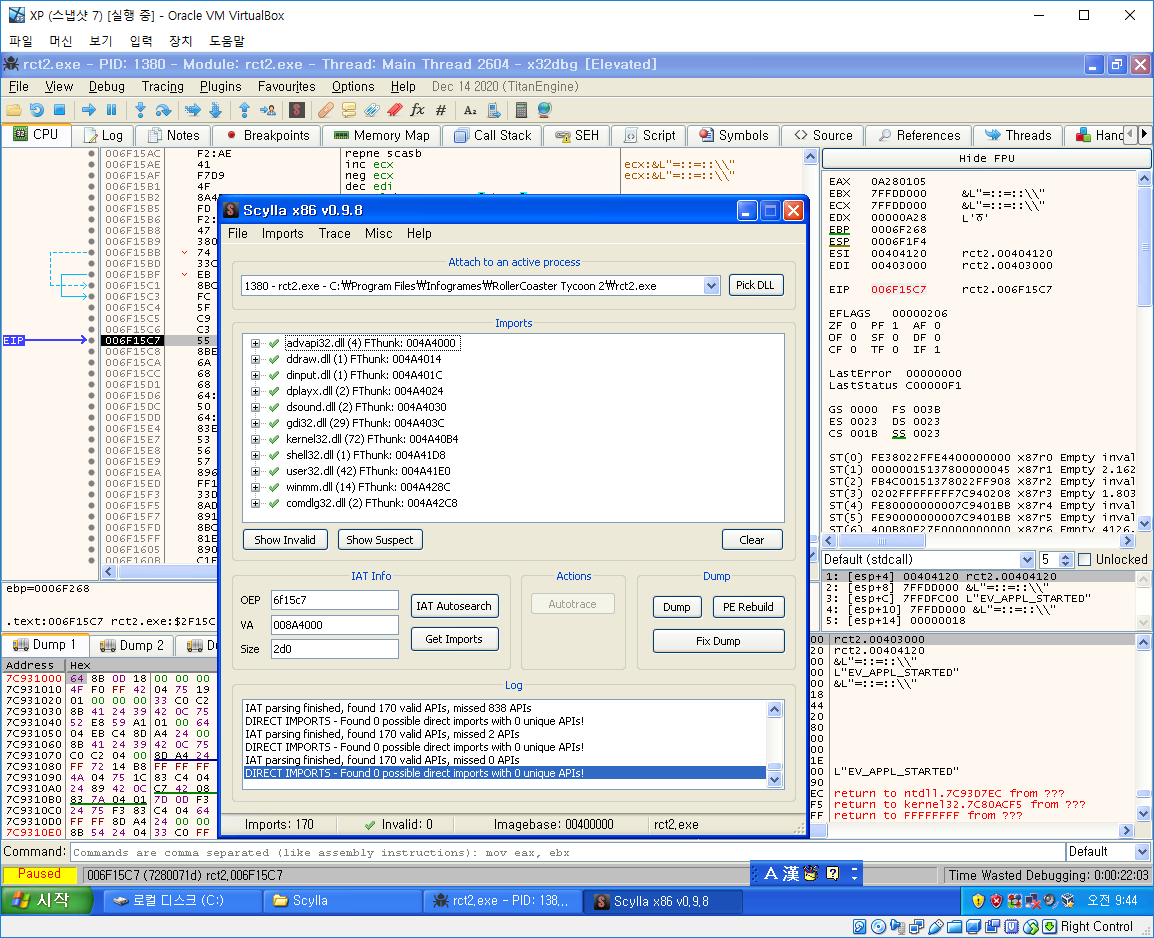 이제 Dump를 눌러 exe저장 -> Fix Dump로 imports 수정을 할것이다.